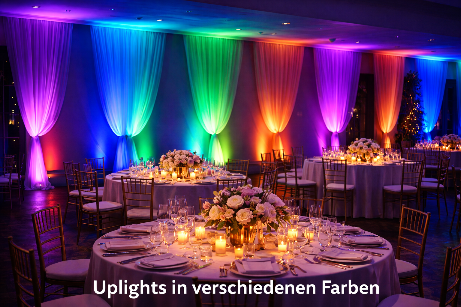 LED-Scheinwerfer in Wunschfarben geben der Location das besondere Etwas und sorgen für eine wunderschöne Atmosphäre.